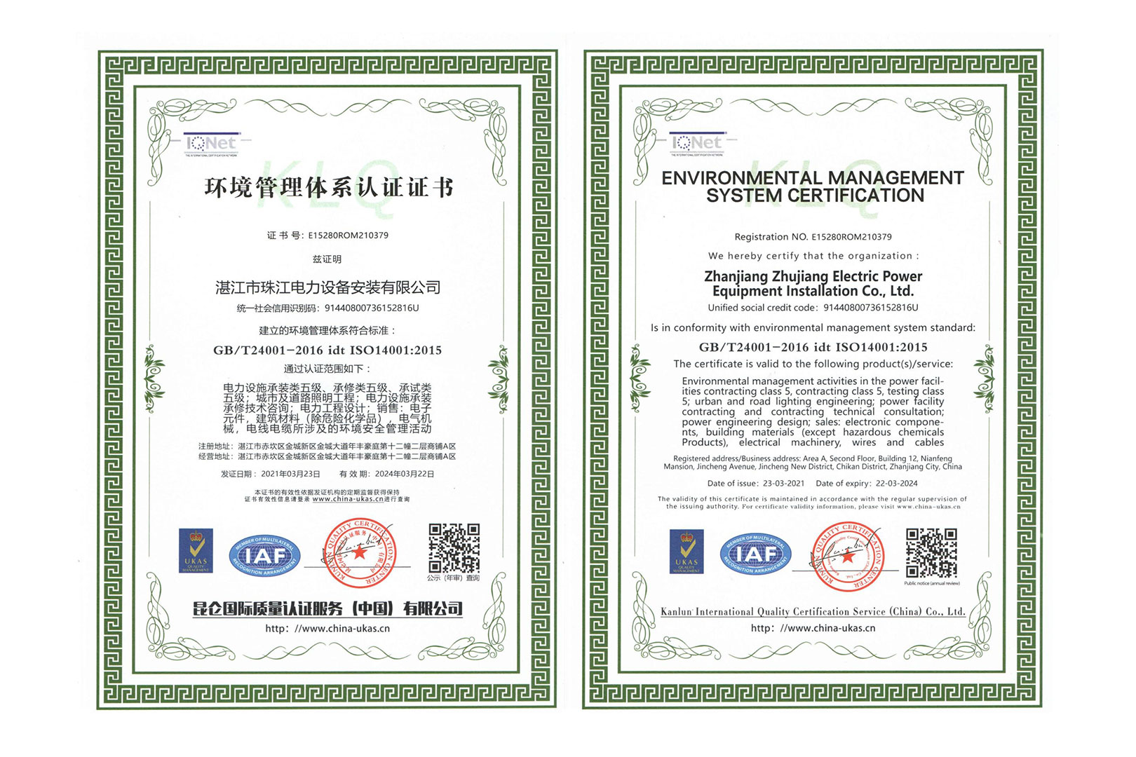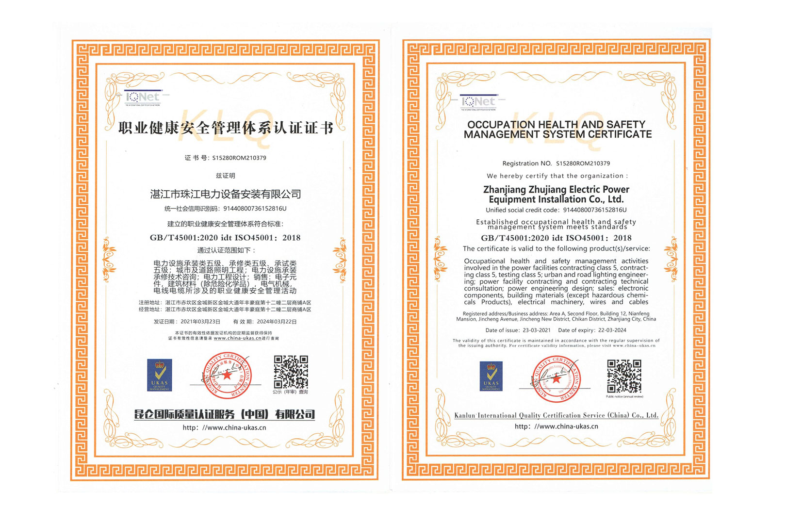 公司狠抓质量关,求信誉,谋发展,提高企业知名度,通过了《环境管理体系》、《职业健康安全管理体系》和《质量管理体系》国际质量体系认证,历年来持续有效。